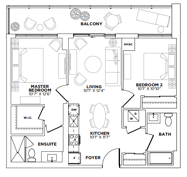 - 2 bedrooms / 2 bathrooms