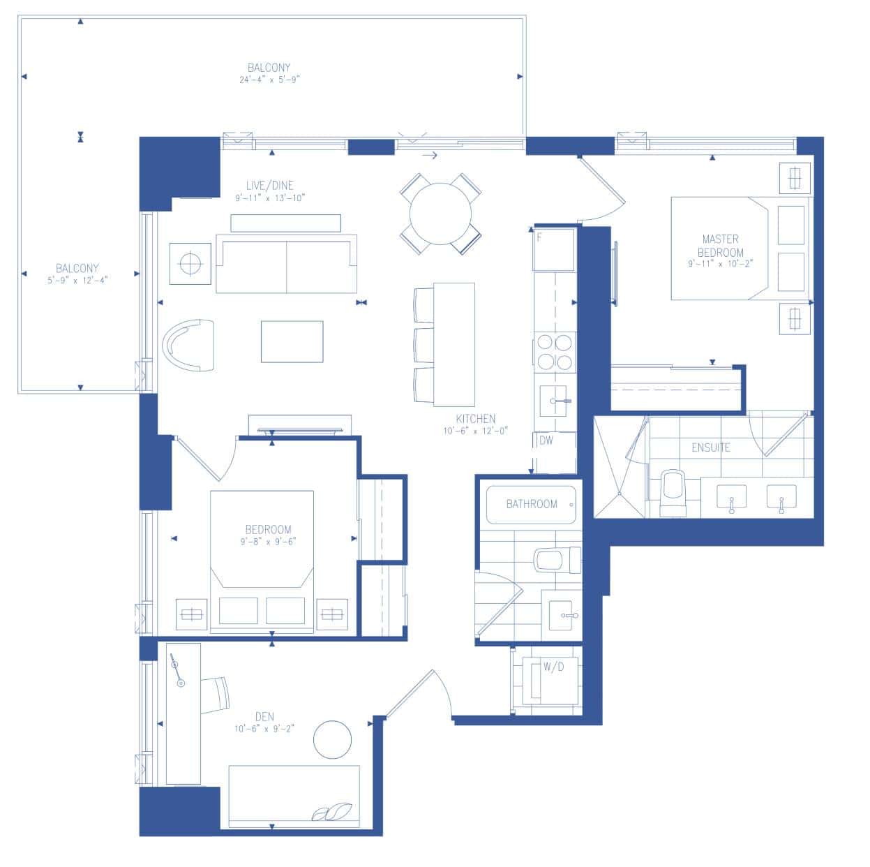 This brand new 2 bedroom + Den condo (Harlow layout) is approximately 928 sq ft and features 9 ft ceilings, functional and bright layout, modern integrated appliances, ensuite laundry room and much more. Large closet in master bedroom and roller blinds throughout are included. 2 full baths.