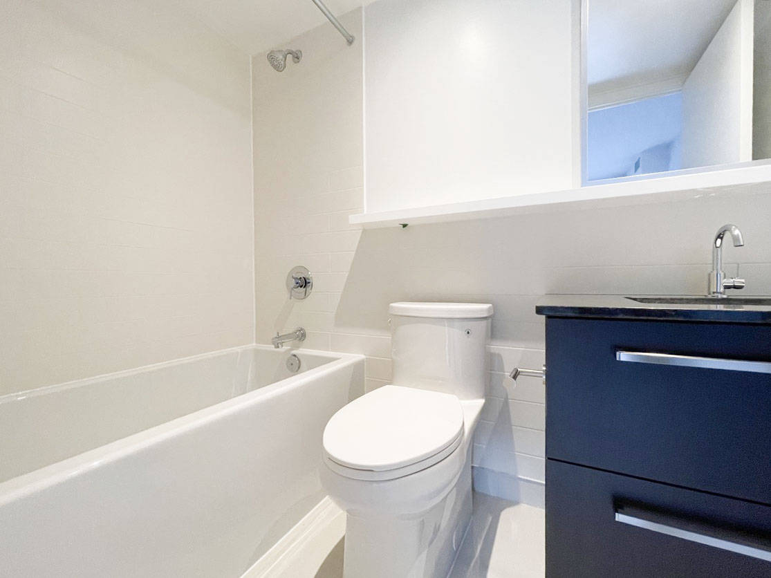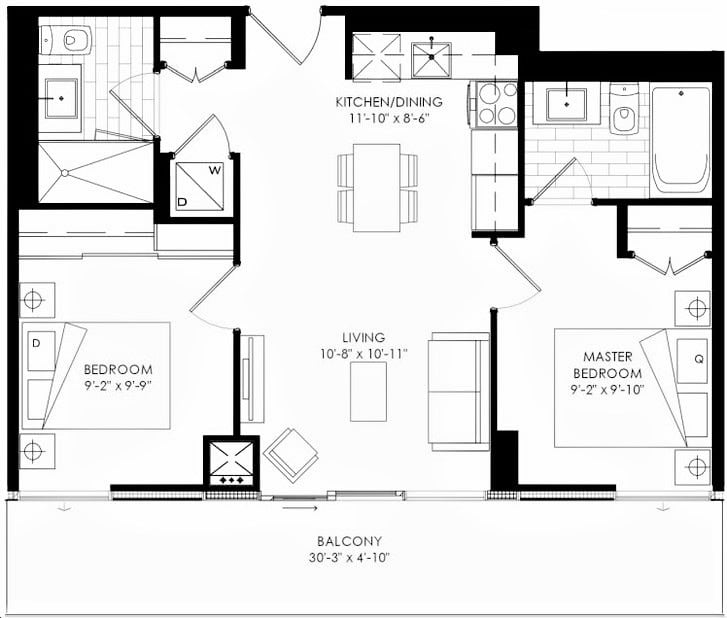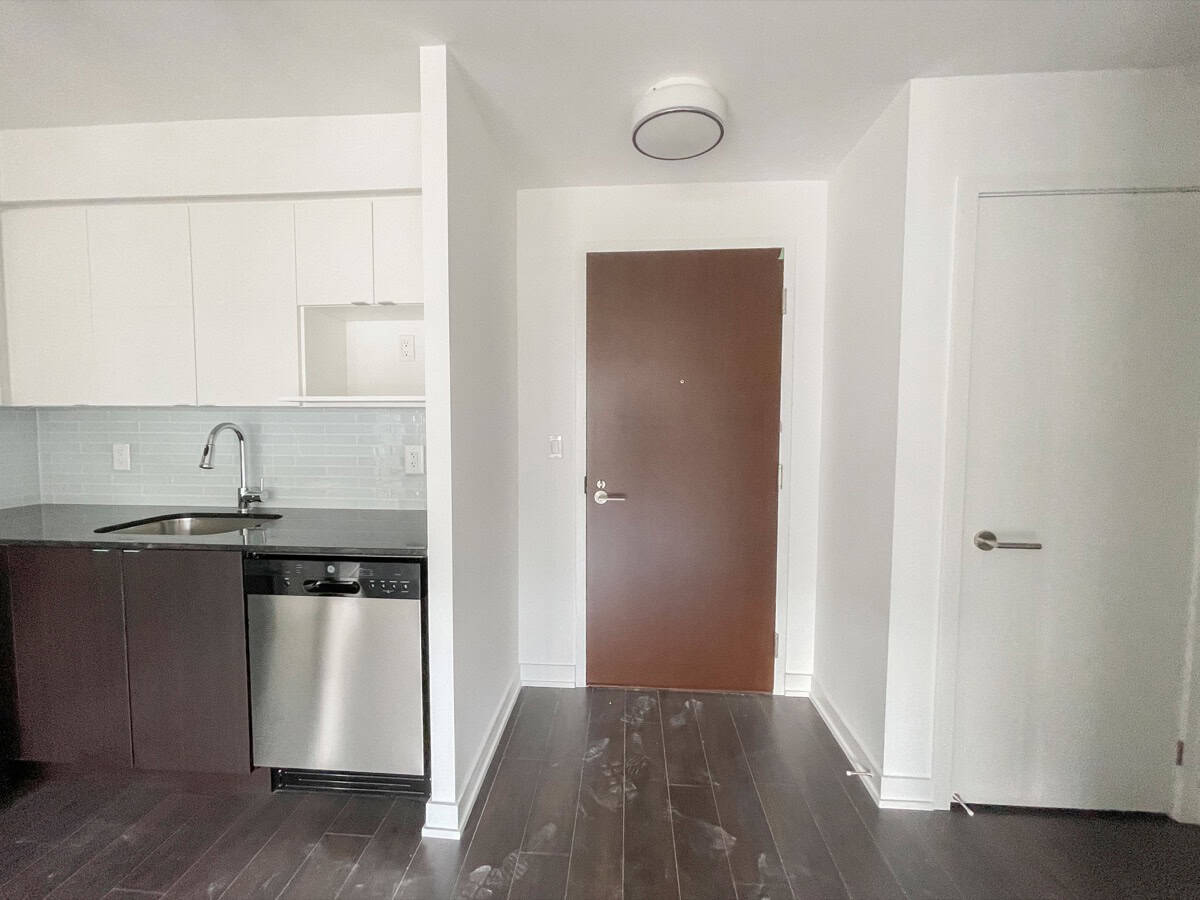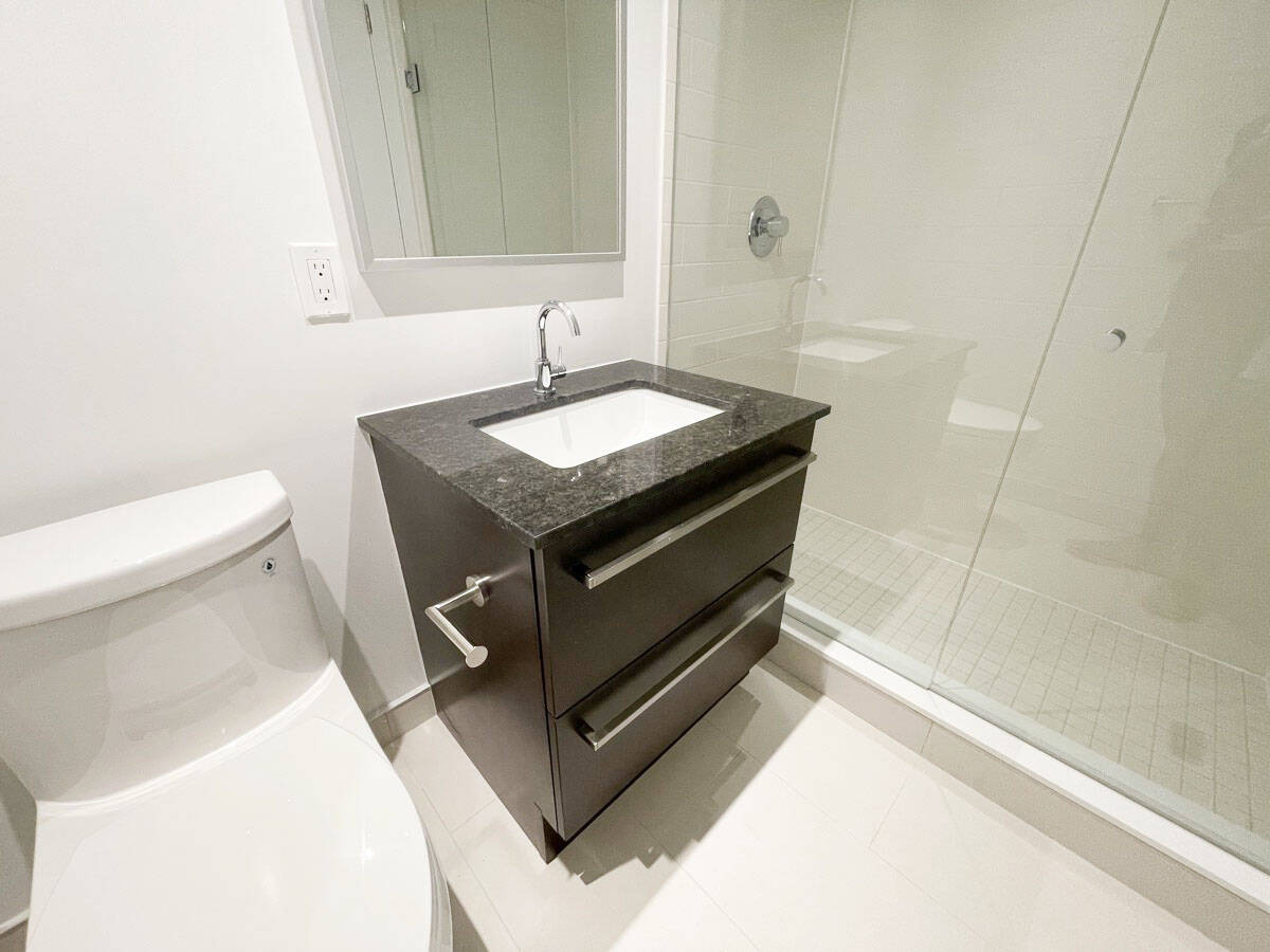 Two bedrooms, two baths. Approximately 650 sq ft +100 sq ft balcony. Located on the 5th floor. The unit features stainless steel kitchen appliances, and ensuite washer / dryer. Ceramic back splash, granite countertops, large open balcony with a WEST facing courtyard view. Modern roller blinds included. No pets please.