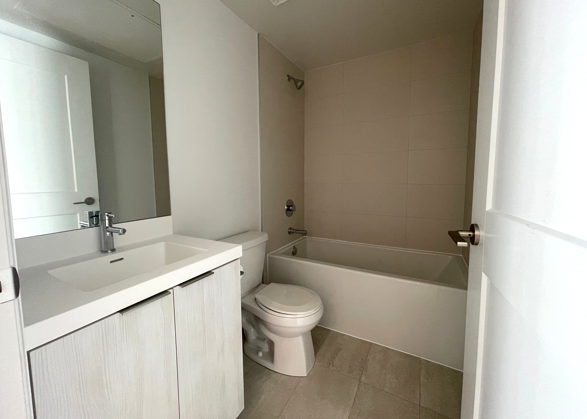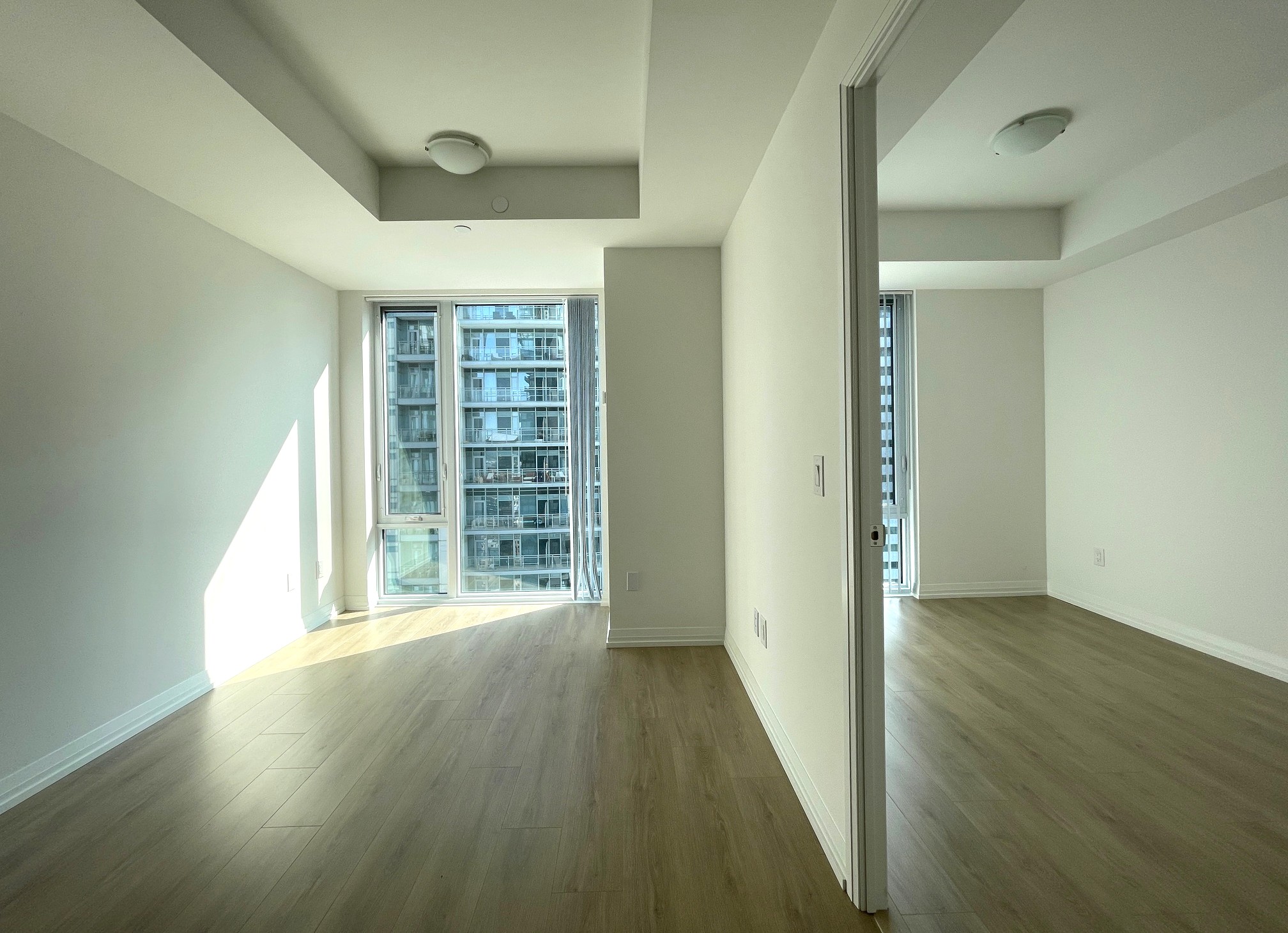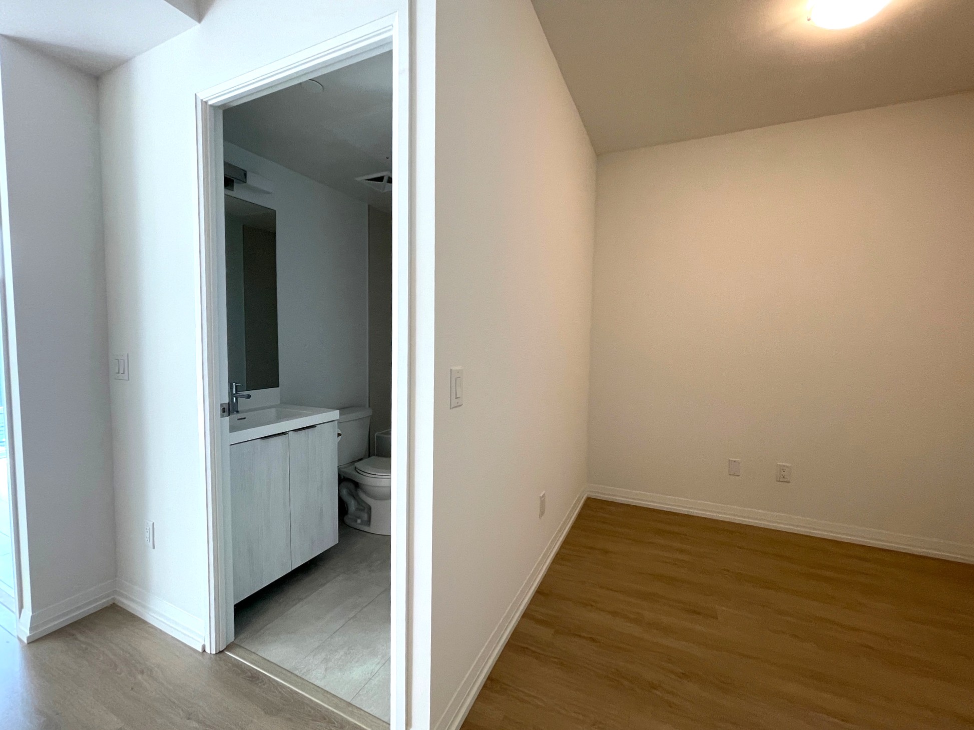 MODERN UNFURNISHED 1 BEDROOM + DEN CONDO IN THE HEART OF THE ENTERTAINMENT DISTRICT FOR RENT! Approximately 500 sq ft. The unit comes with high-end finishes, 6 appliances, blinds throughout and much more. Ensuite laundry is included. Very functional layout with designated living room space and bedroom area. Located on the 40th floor with a charming view of Downtown core. No balcony. East Facing.